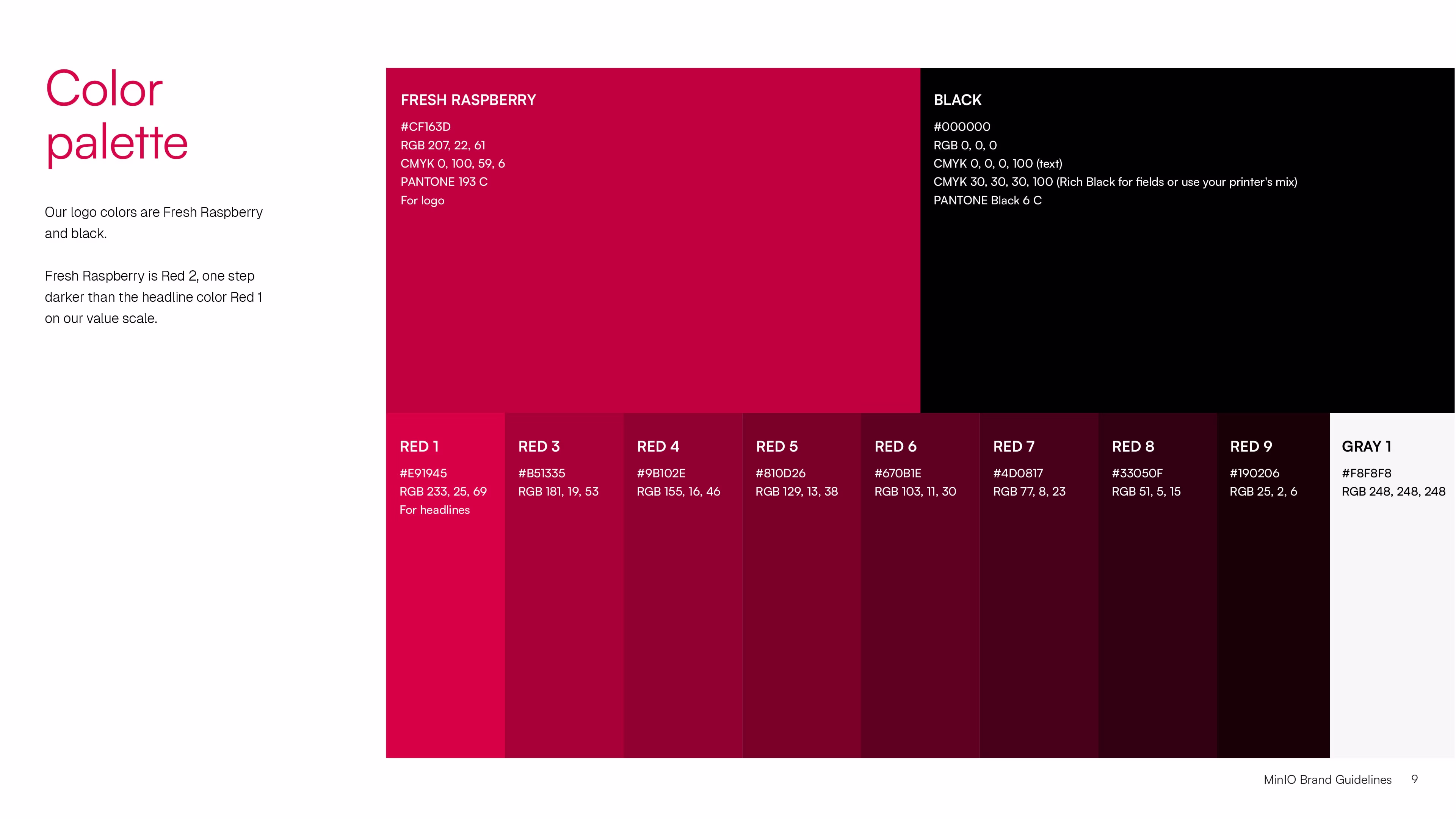 Our signature brand color is a bold Fresh Raspberry. Our secondary colors are mix of strong, dramatic darks and fresh pleasing brights.