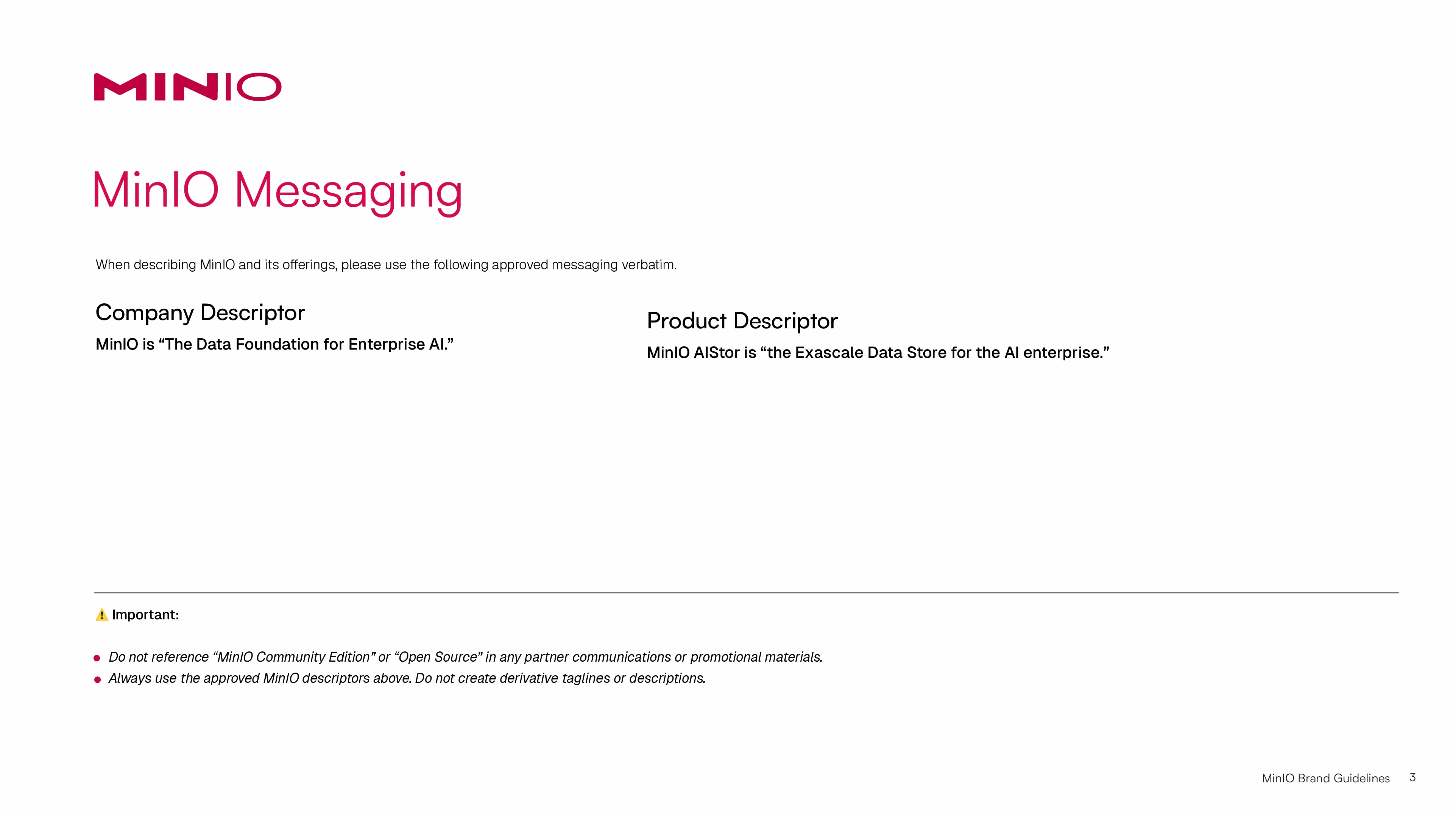 The MinIO logo is a wordmark crafted with geometric simplicity. It conveys our spirit of minimalism.