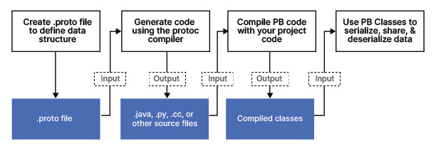 Google’s Protocol Buffers (also known as Protobuf) is a language- and platform-agnostic data serialization format used for efficiently encoding structured data for transmission over a network or for storing it in a file. It is designed to be extensible, allowing users to define their own data types and structures, and provides a compact binary representation that can be efficiently transmitted and stored. Protocol Buffers are used in various Google APIs and are supported in many programming languages, including C++, Python and Java. Protocol Buffers are often used in situations where data needs to be transmitted over a network or stored in a compact format, such as in network communication protocols, data storage and data integration.