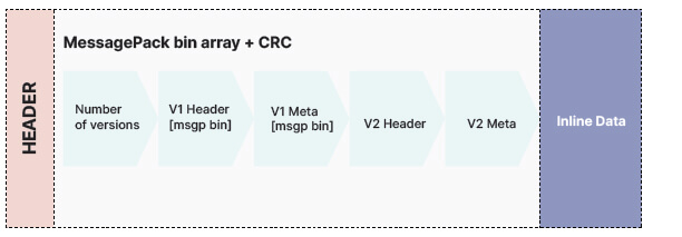 The metadata conversions occur from previous versions, and new versions include a “V2Obj” or “DelObj” depending on the active operation when update requests are received. Essentially in cases where we only need to read the metadata, we can merely stop reading the file when we have reached the end of the metadata. We can achieve updates with at most two continuous reads.