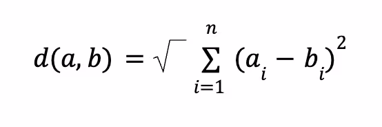 For fun, let’s do some more checking by hand-calculating a few distances between the query and the entries in the vector database. This will require a little math but it is not complicated. The index we used in our collection uses the L2 Euclidean distance. The standard mathematical formula for calculating the L2 Euclidean distance between two n-dimensional vectors a and b is: