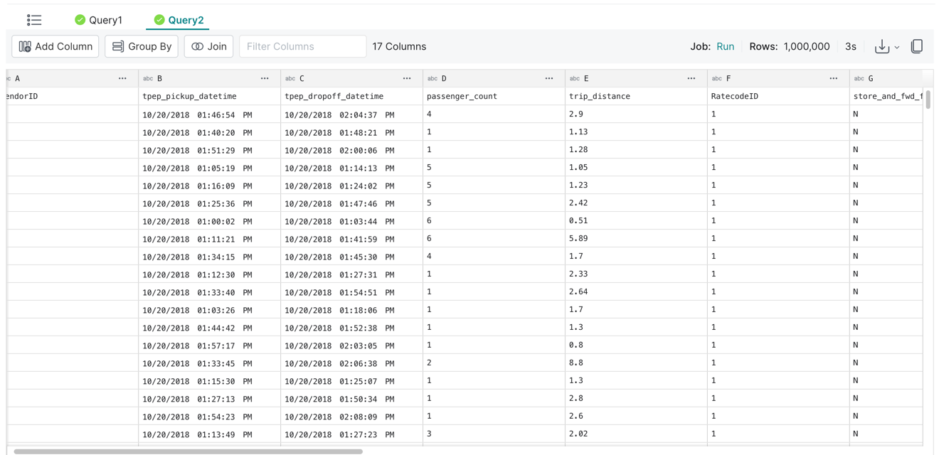 After loading the file, we will be taken to the SQL Query Console where we can start executing queries. Here are 2 sample queries that you can try executing