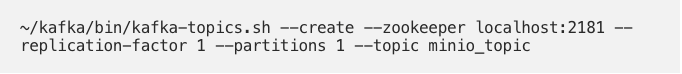 5. Create Kafka Topic : Create Kafka Topic called minio_topic. This is the same topic we set above in s3-sink.properties file.