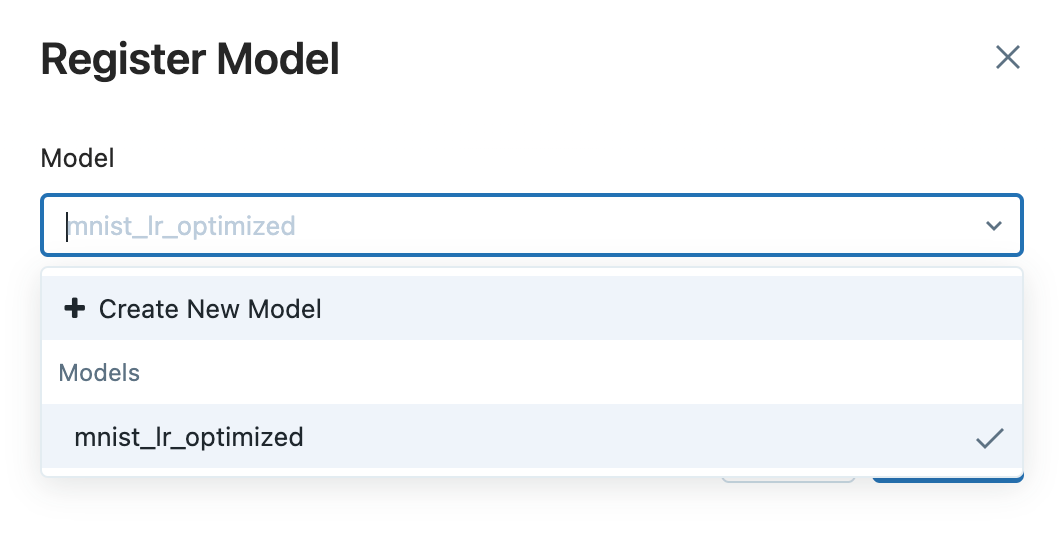 Clicking on the `Register Model` button will show the dialog below.