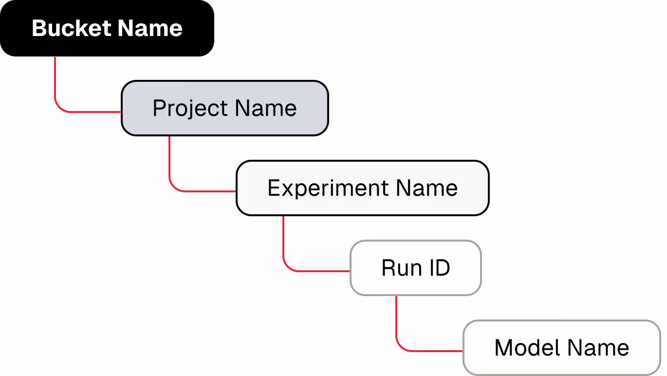 An MLOps convention is to organize training runs by experiment. For example, if you are investigating an architecture with four hidden layers, then you will have multiple runs with this architecture as you look for the optimal values for various hyperparameters. If a colleague runs experiments with a five-layer architecture, you need a way to prevent name collisions. This can be solved using object paths that emulate the hierarchy shown below.