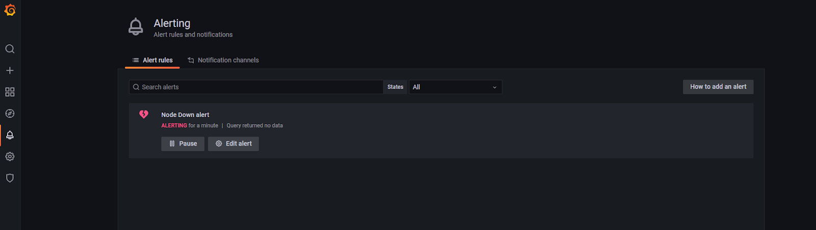 As alerting in Grafana is configured via GUI, it’s an easier and faster way to learn how to configure and issue alerts. We’re going to run through a quick demo, for a more in-depth guide see Overview of Grafana alerting.
