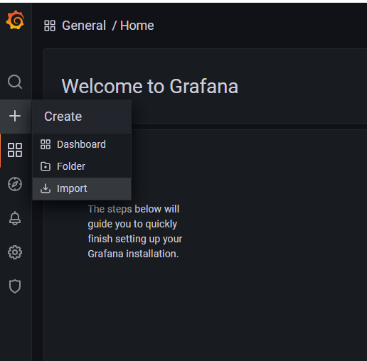 To install the MinIO Grafana dashboard, click on the plus sign and select Import.