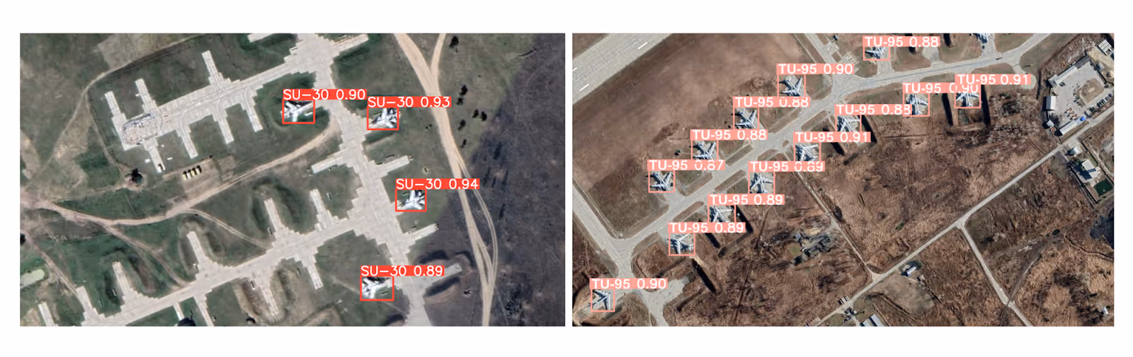The other two jets are not Su-30s. My initial dataset included ~100 images, so I was surprised the model was already able to pick up on the nuances between similar looking aircraft. I guess the lesson here is, never underestimate gradient descent!