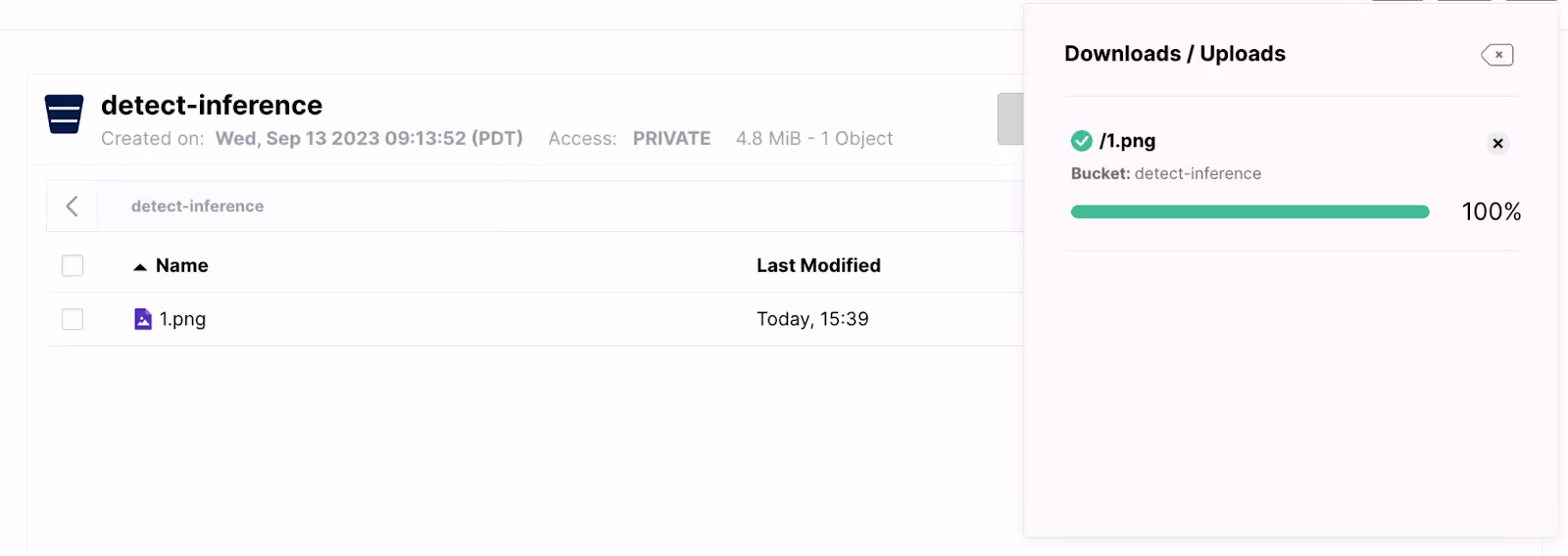 I drop the new image in my ‘detect-inference’ bucket:
