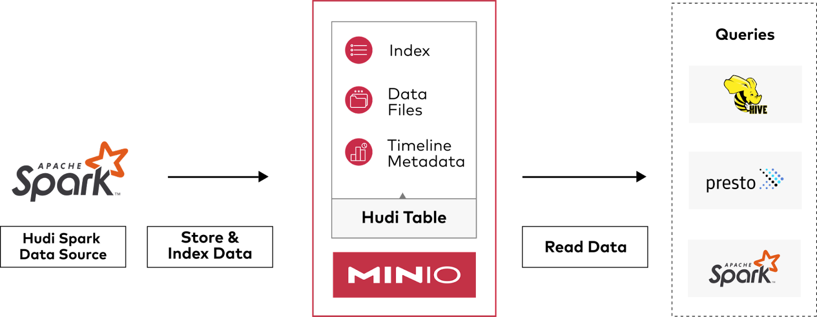 Over time, Hudi has evolved to use cloud storage and object storage, including MinIO. Hudi’s shift away from HDFS goes hand-in-hand with the larger trend of the world leaving behind legacy HDFS for performant, scalable, and cloud-native object storage. Hudi’s promise of providing optimizations that make analytic workloads faster for Apache Spark, Flink, Presto, Trino, and others dovetails nicely with MinIO’s promise of cloud-native application performance at scale.