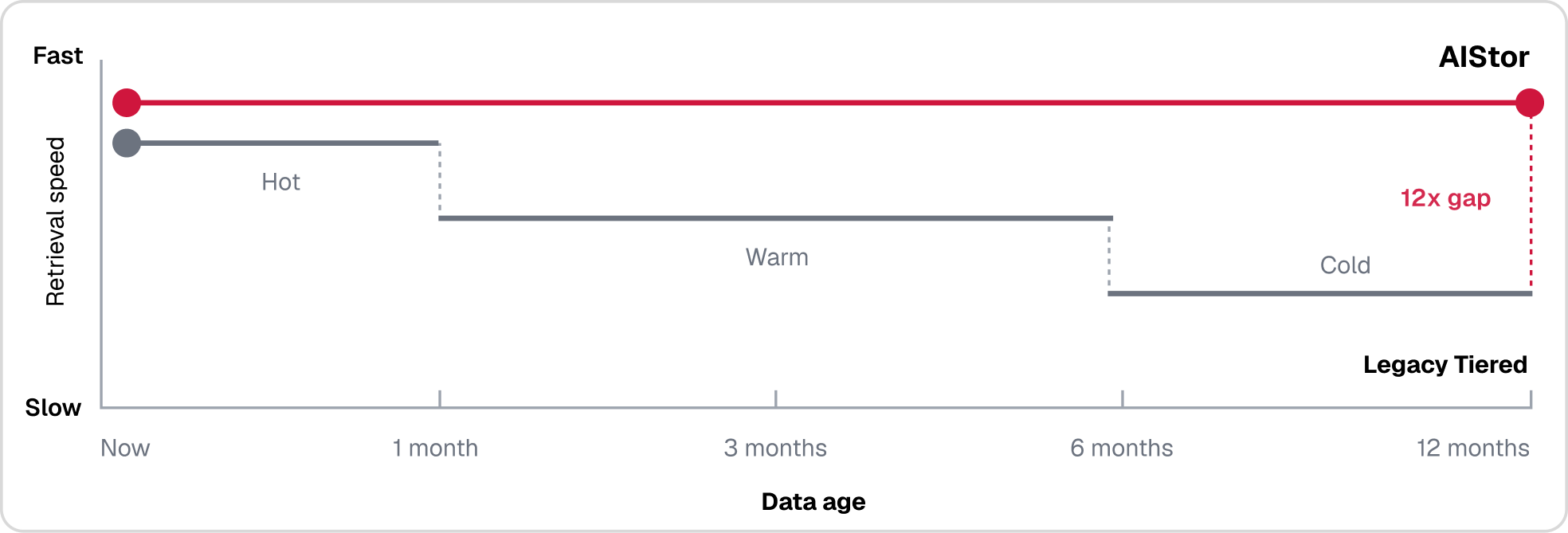 When an incident occurs and the investigation requires correlating today's alerts with patterns from six months ago, the query against AIStor runs at the same speed as one from yesterday because no data migration between tiers is involved. This enables faster root-cause analysis, reduced mean time to resolution, and improved SLA compliance. Organizations using AIStor for observability storage report retrieving historical data up to 12× faster than traditional archive-tier solutions.